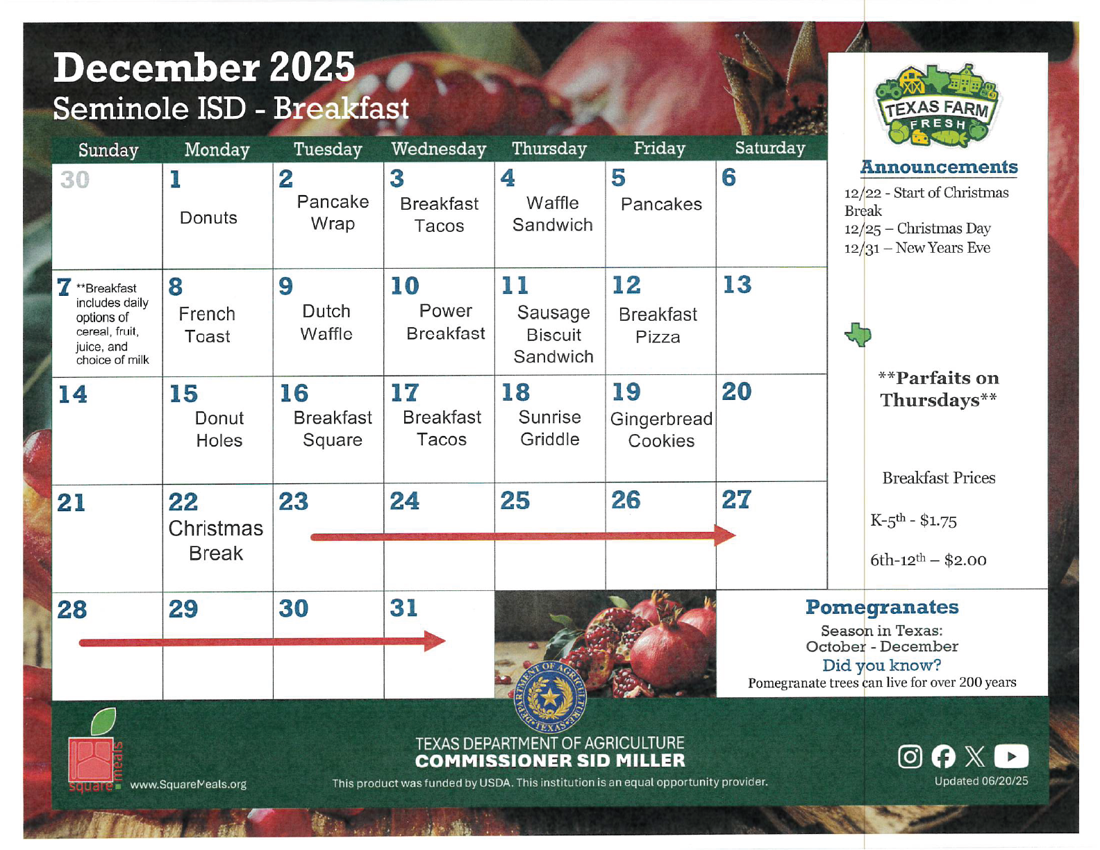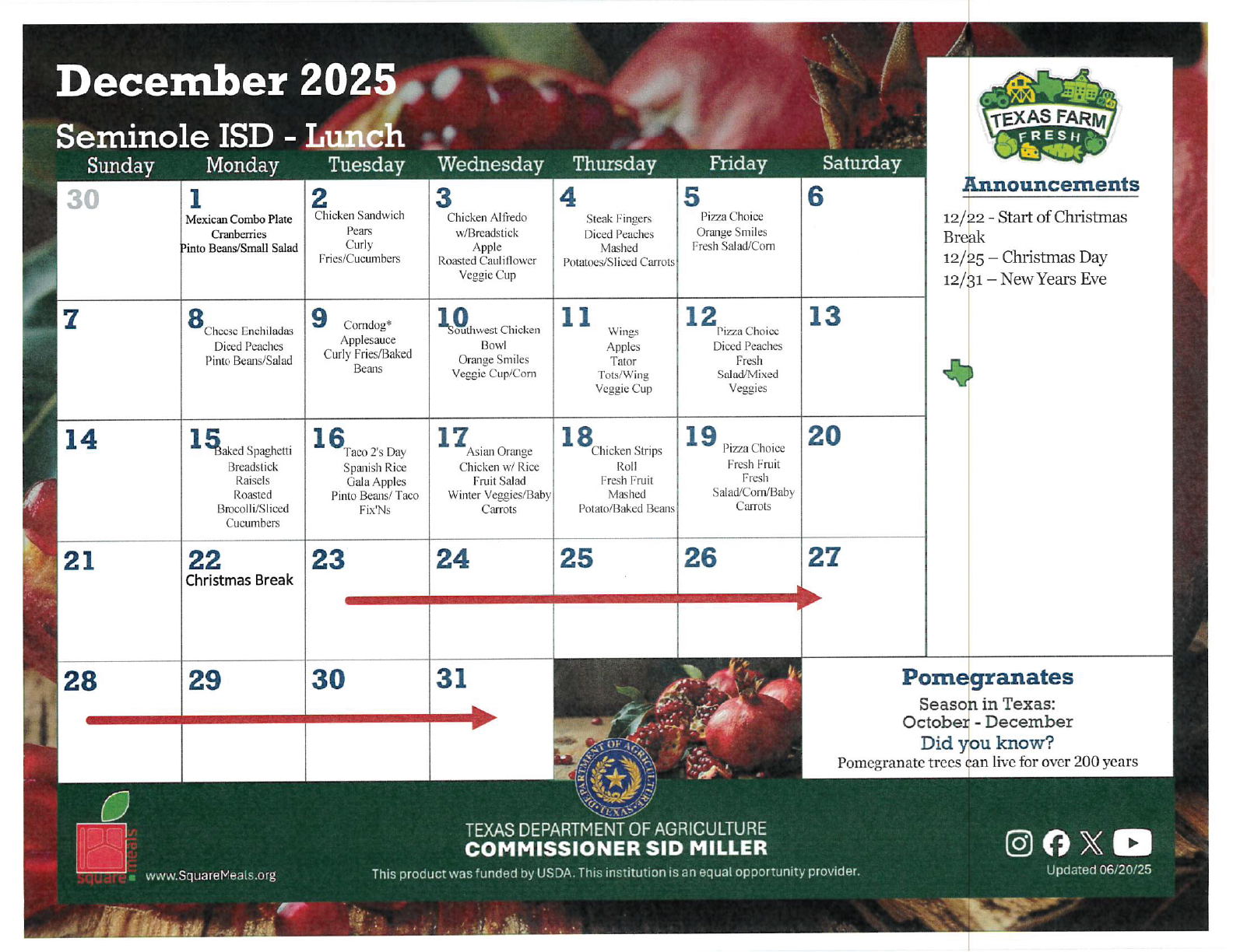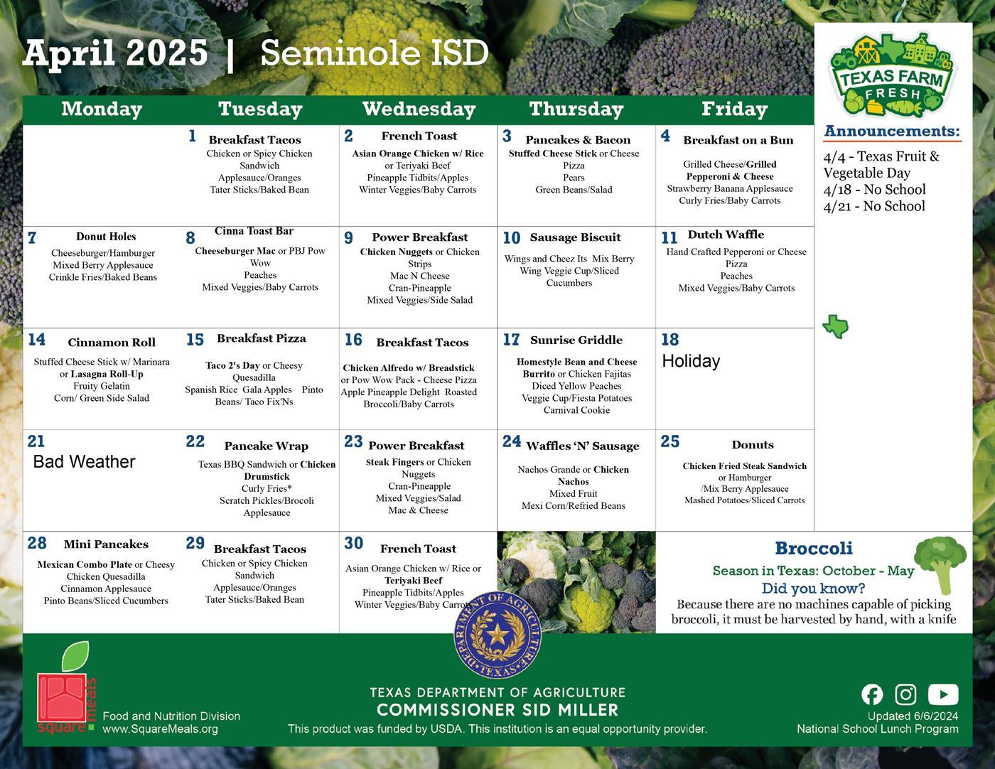 Seminole Junior High & High School Menus